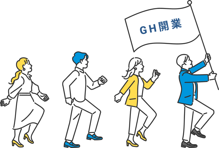 グループホーム開業から軌道に乗るまでをトータルサポートします。あくまで開業までをゴールとした他社サービスはありますが、コプラットでは、開業までの手続きや物件探しだけでなく、利用者集客や採用、その後の加算取得サポートなど、運営する上で必要不可欠な業務に対しても一定期間の支援をさせて頂いております。