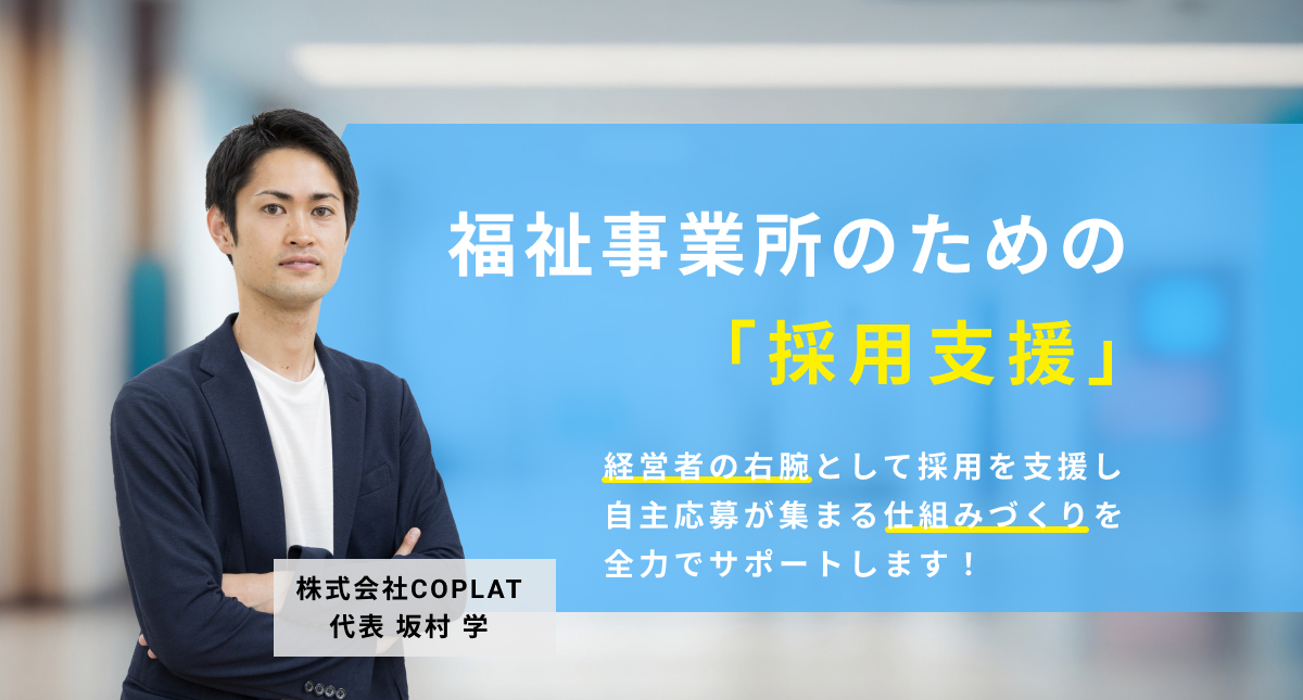 障がい者グループホームを6拠点、訪問介護事業所1拠点、老人ホーム紹介センターを現在運営。 同業者から採用・運営等に関する相談をされるようになったのをきっかけに、COPLATを立ち上げ、現在までに障がい者グループホーム、訪問介護事業所、訪問看護事業所、特養、保育事業所での採用実績をあげている。 また幅広い業界の採用コンサルティング事業を展開している㈱ユウミから誘いを受け、「採用のプロ」として事業・経営参画している。