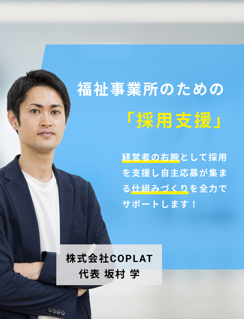 私も数年前までは皆様と同じように自身が経営する福祉事業所の採用で困っていました。そんなとき、外部業者(人材紹介、採用代行業者)に頼ったこともありましたが、結果はうまくいきませんでした。 残念ながら、福祉事業者があまり「採用」について詳しくないこともあり、 契約するときだけ良いことを言ってくる会社も一定数います。 採用の成果は「コンサルタントの知見、提案力、実行力、粘り強さ」×「クライアントの協力」で決まります。 採用でお困りでこのページに辿りついてくださった事業者様!まずは一度弊社にご相談ください。